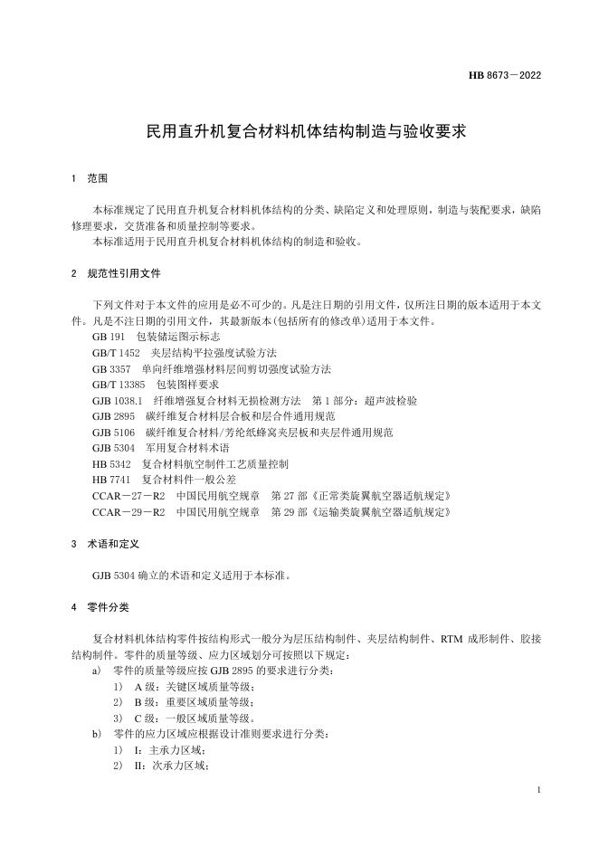 HB 8673-2022 民用直升机复合材料机体结构制造与验收要求