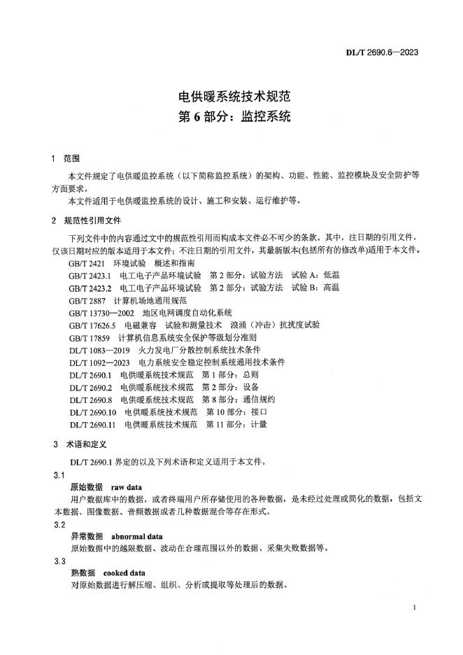 DL/T 2690.6-2023 电供暖系统技术规范 第6部分:监控系统