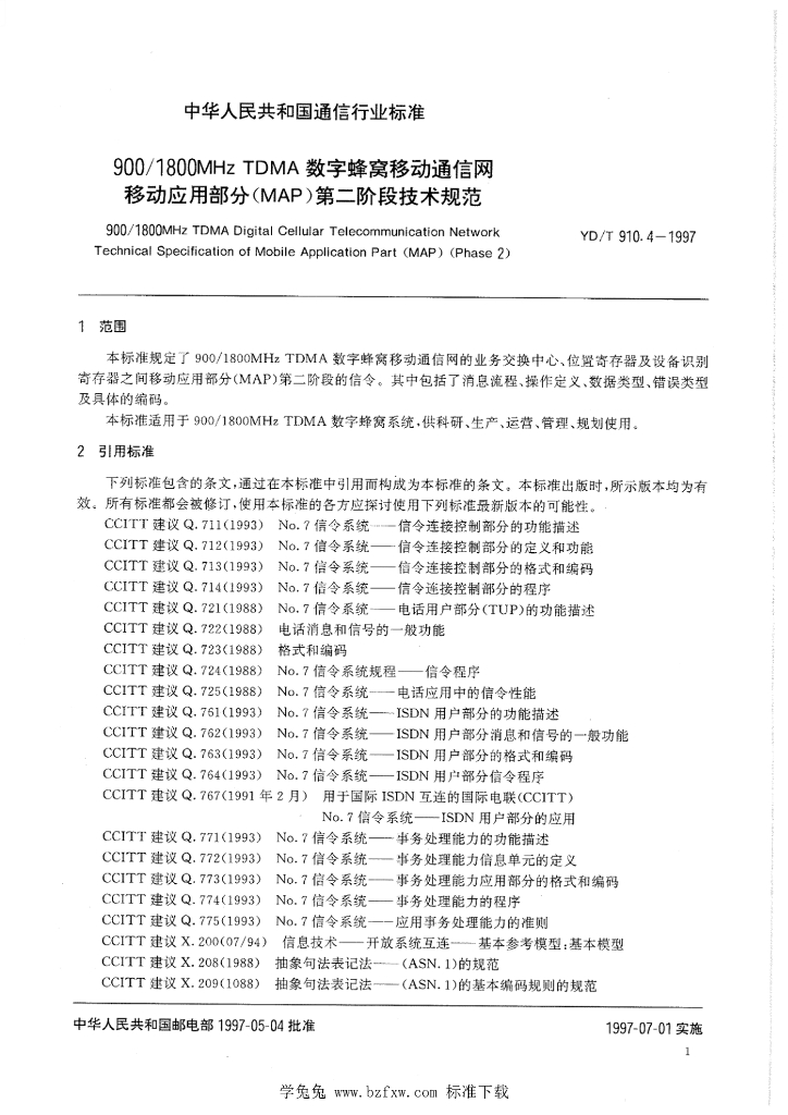 YD/T 910.4-1997 900 1800MHz TDMA数字蜂窝移动通信网移动应用部分(MAP)第二阶段技术规范