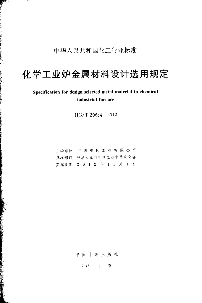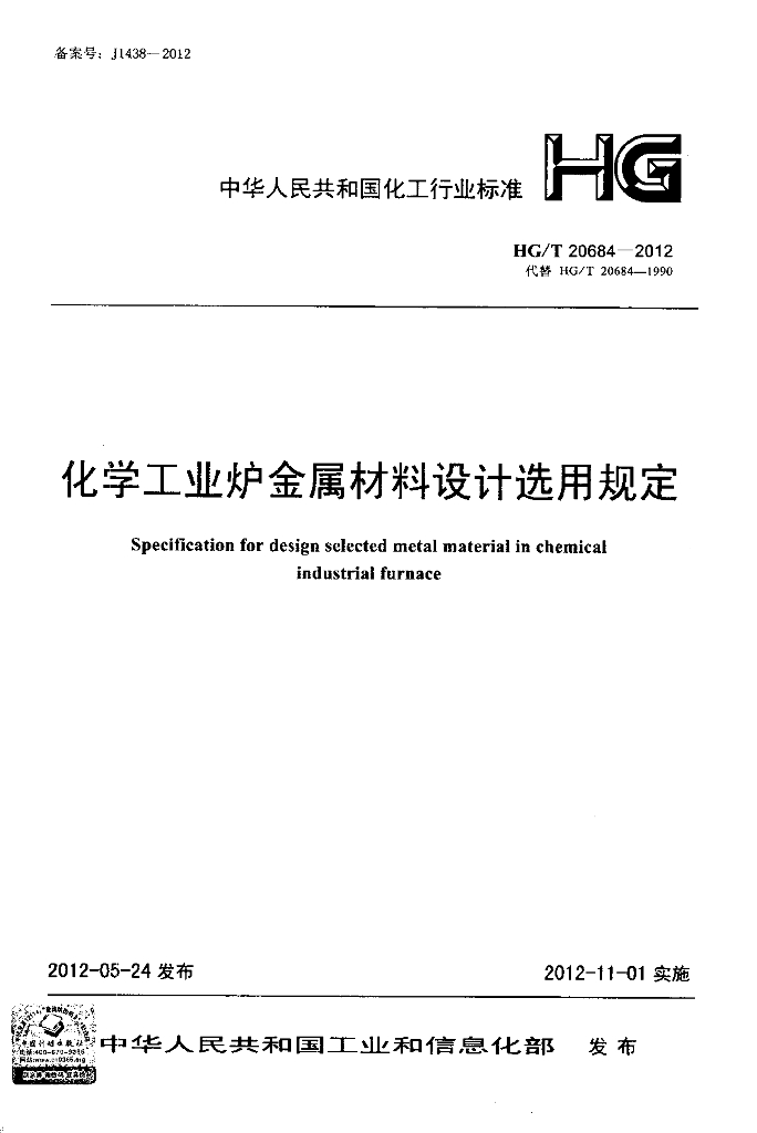 HG/T 20684-2012 代替 HG/T 20684-1990 化学工业炉金属材料设计选用规定