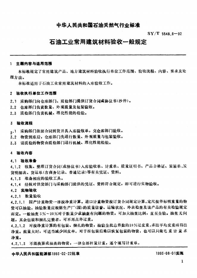 SY/T 5548.6-1992 石油工业常用建筑材料验收一般规定
