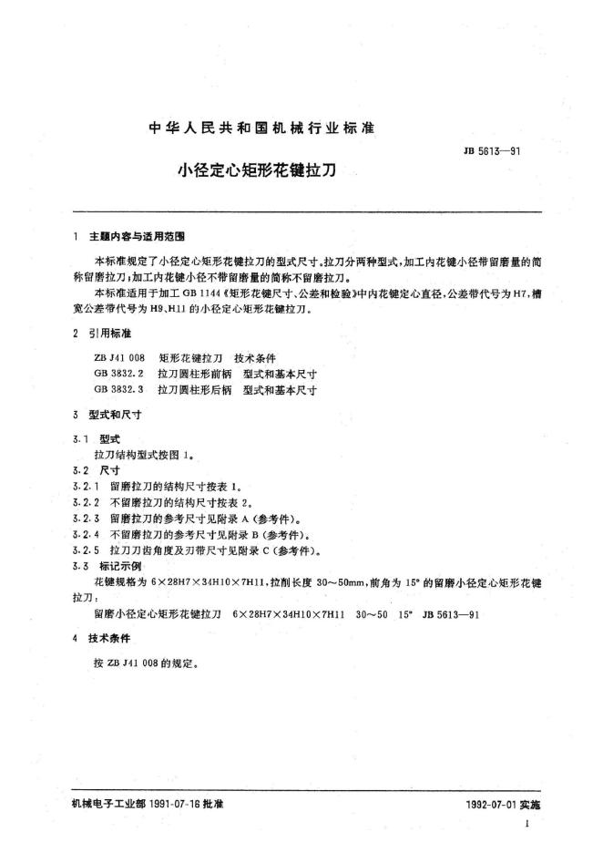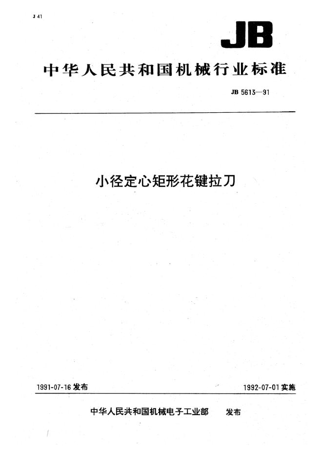 JB 5613-1991 小径定心矩形花键拉刀