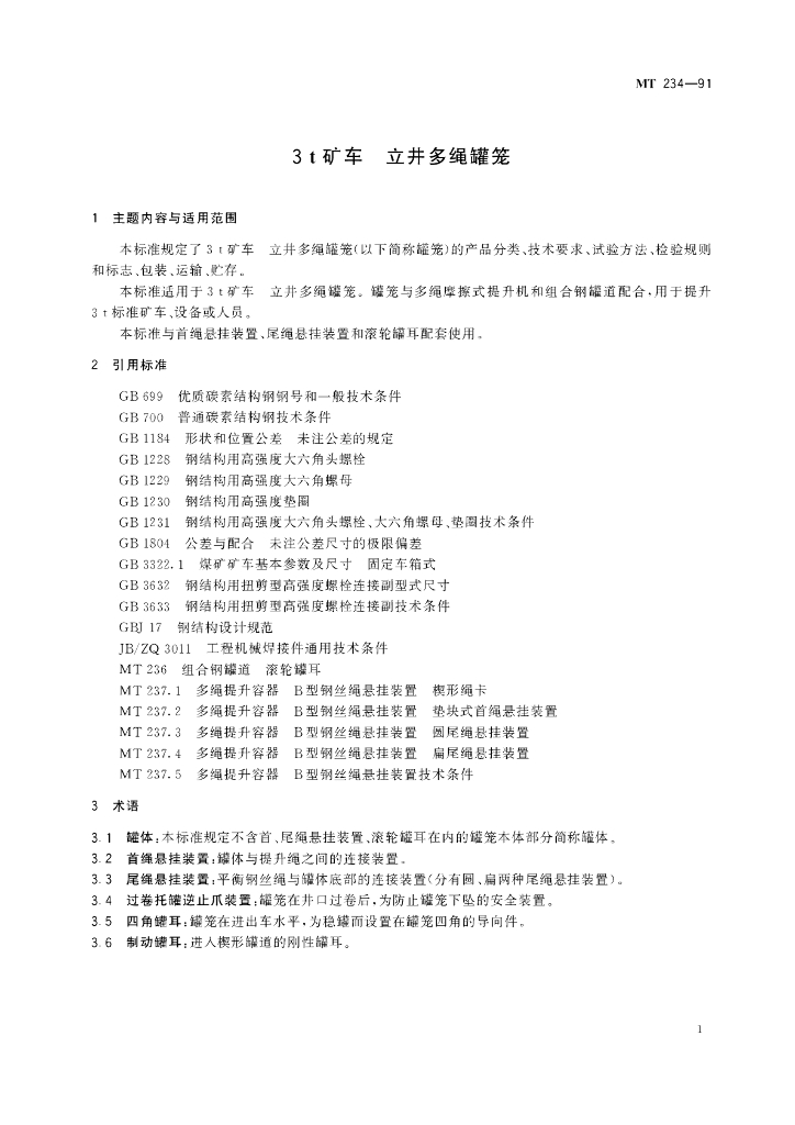 MT 234-1991 3t矿车 立井多绳罐笼