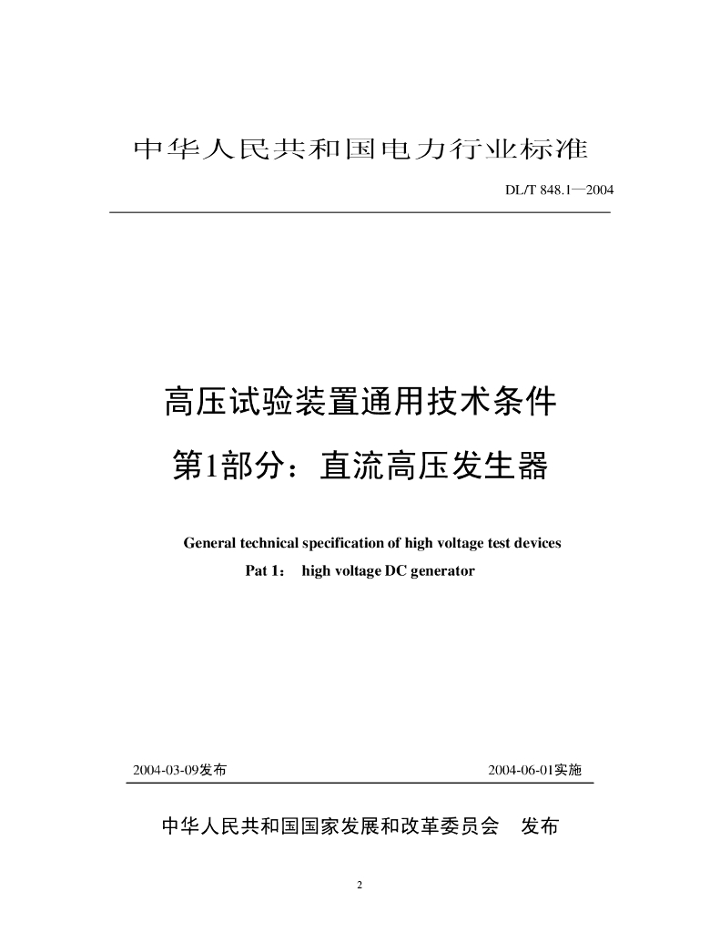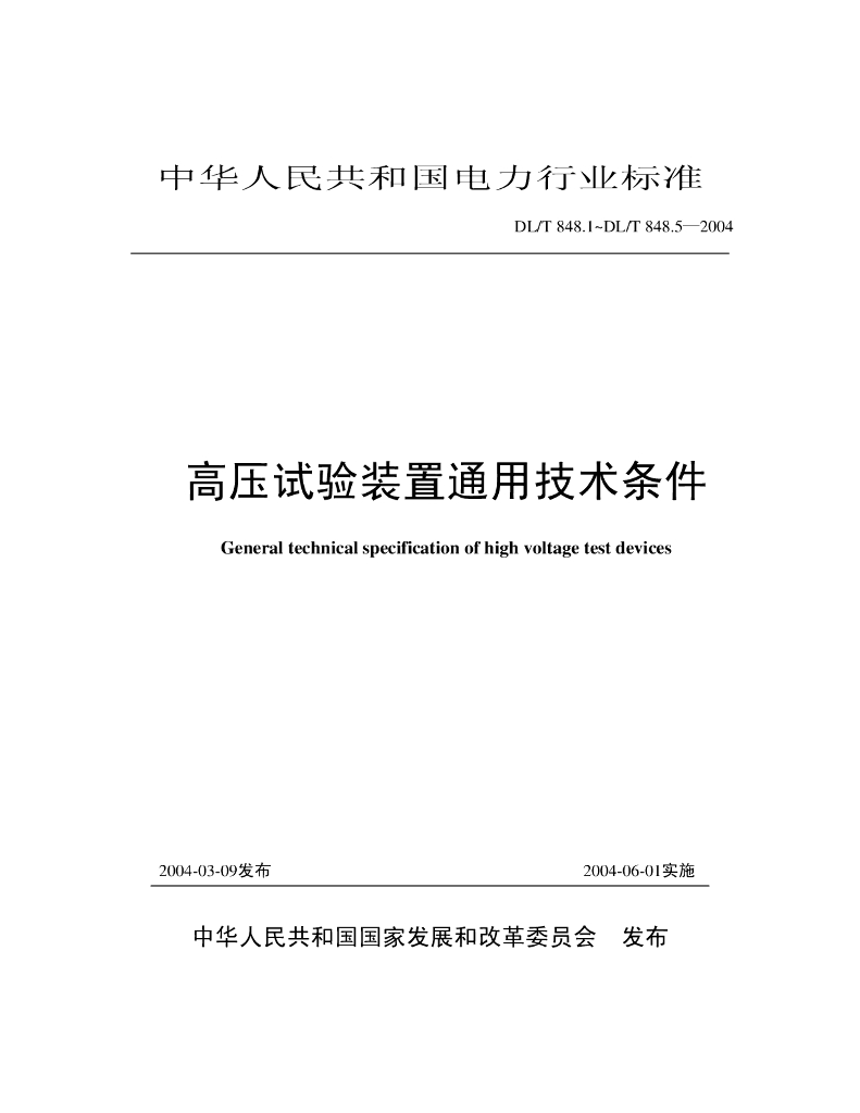 DL/T 848.1~5-2004 高压试验装置通用技术条件