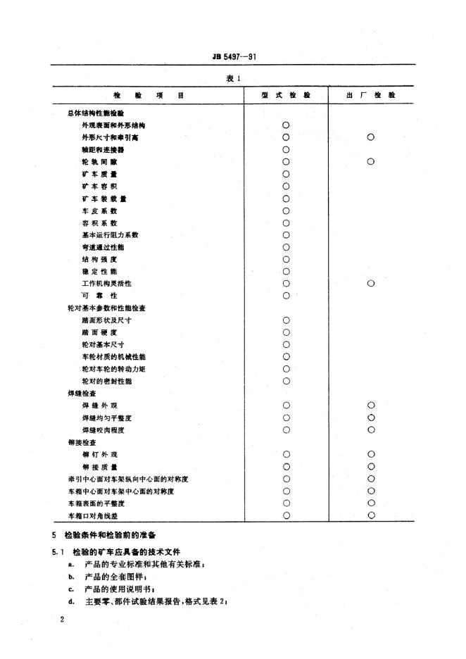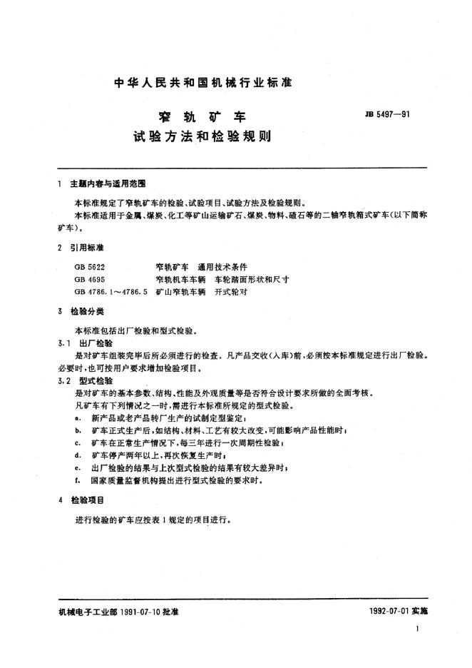 JB 5497-1991 窄轨矿车 试验方法和检验规则