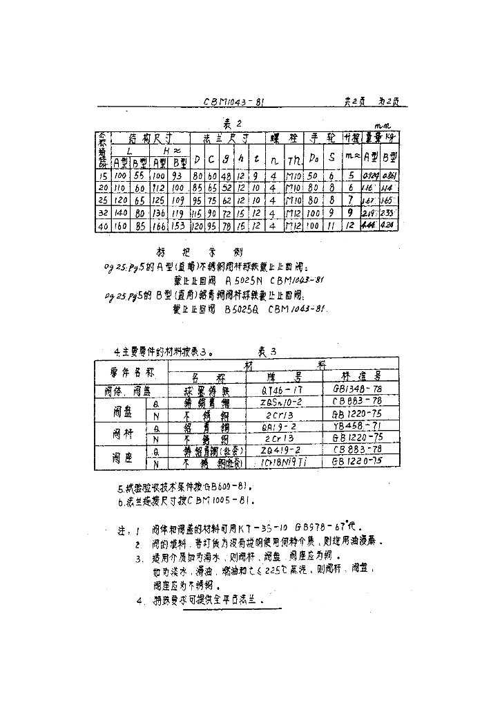 CBM 1043-1981 5kgf-cm2法兰球铁截止止回阀