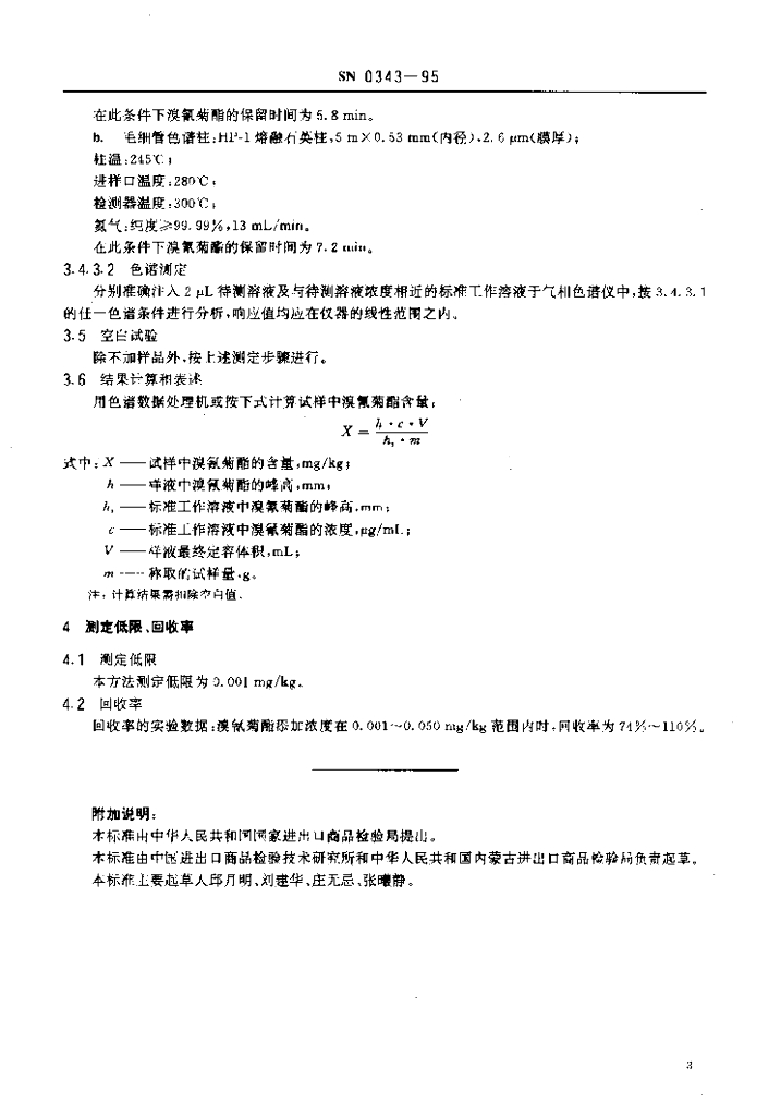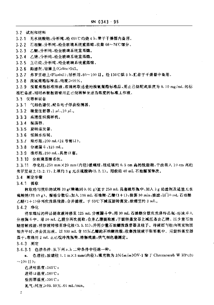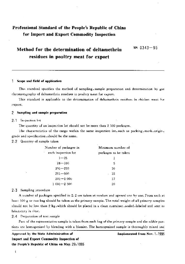 SN 0343-1995 出口禽肉中溴氰菊酯残留量检验方法