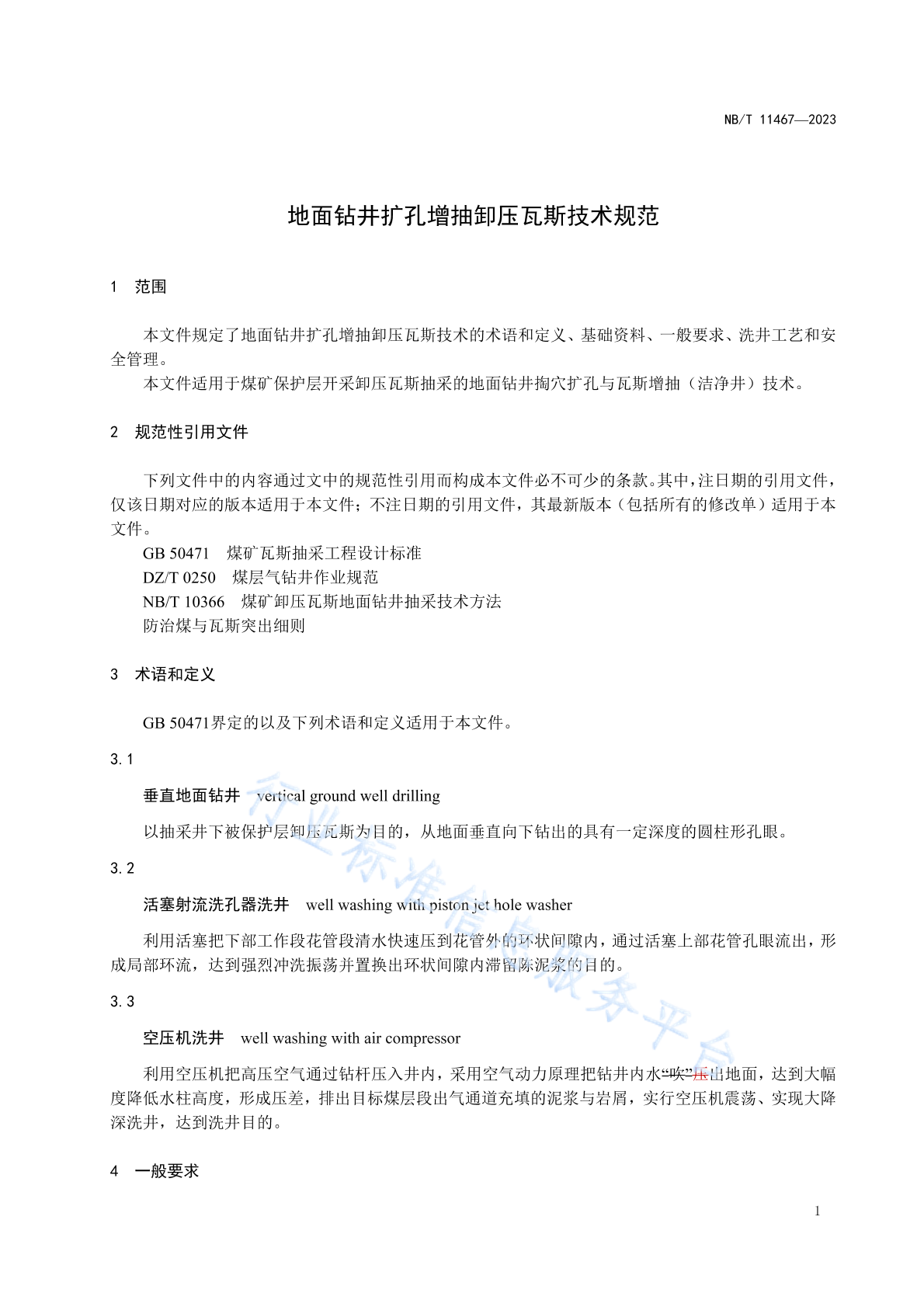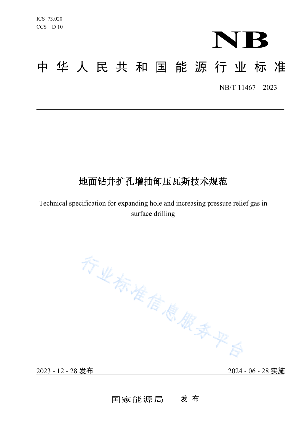 NB/T 11467-2023 地面钻井扩孔增抽卸压瓦斯技术规范