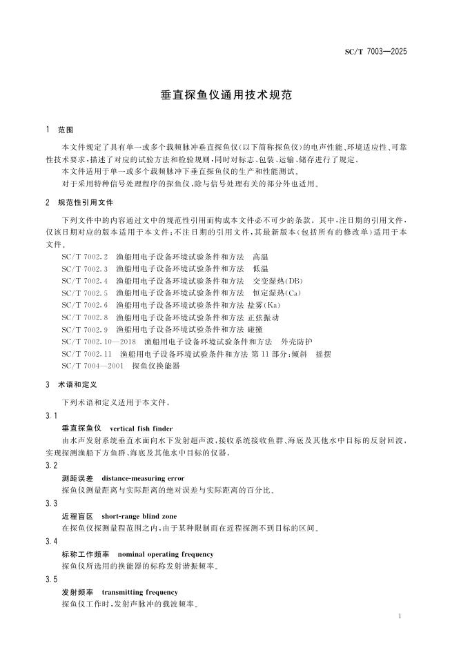 SC/T 7003-2025 垂直探鱼仪通用技术规范