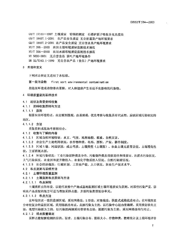 DB32/T 534-2003 无公害农产品产地环境监测与质量评价