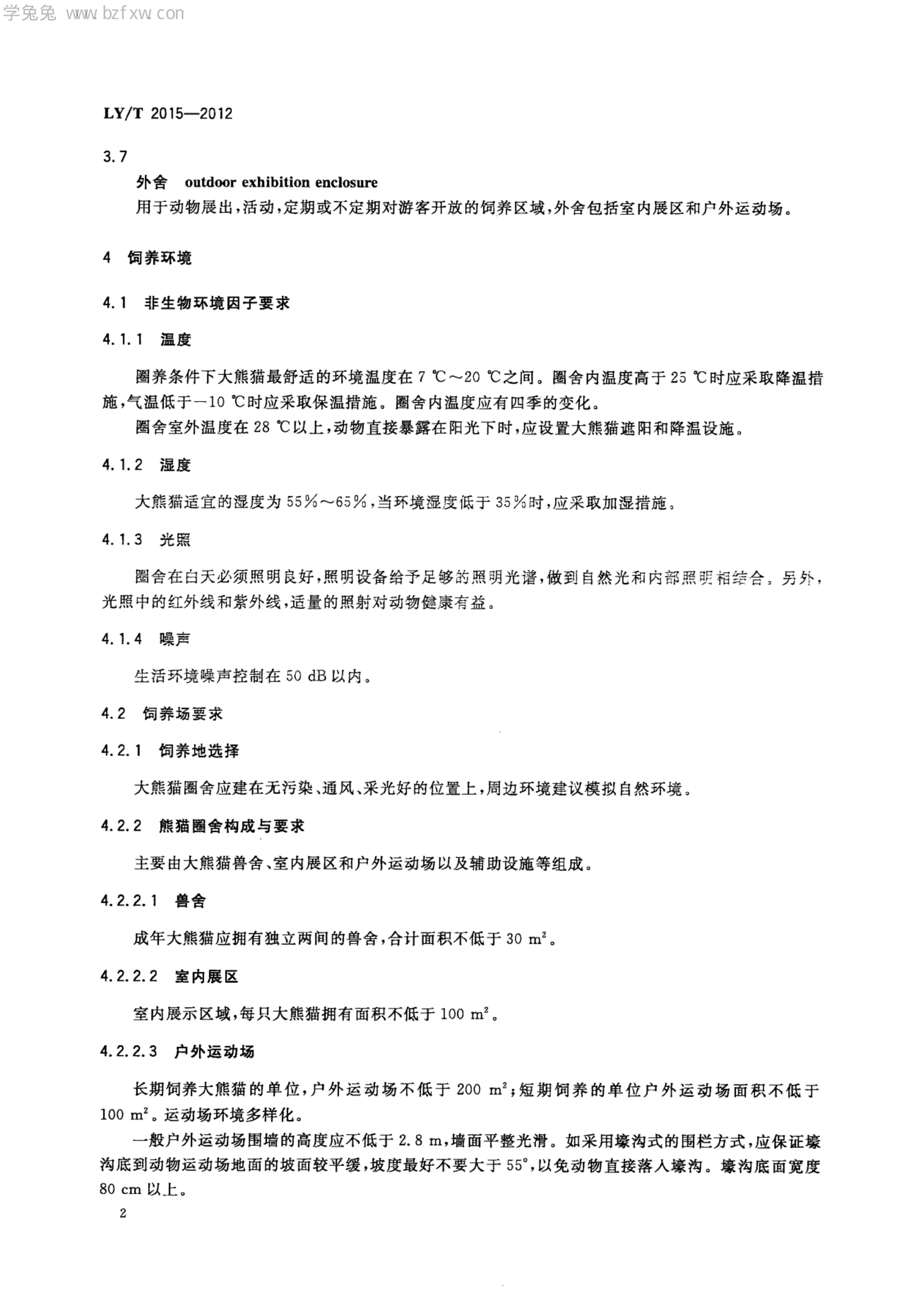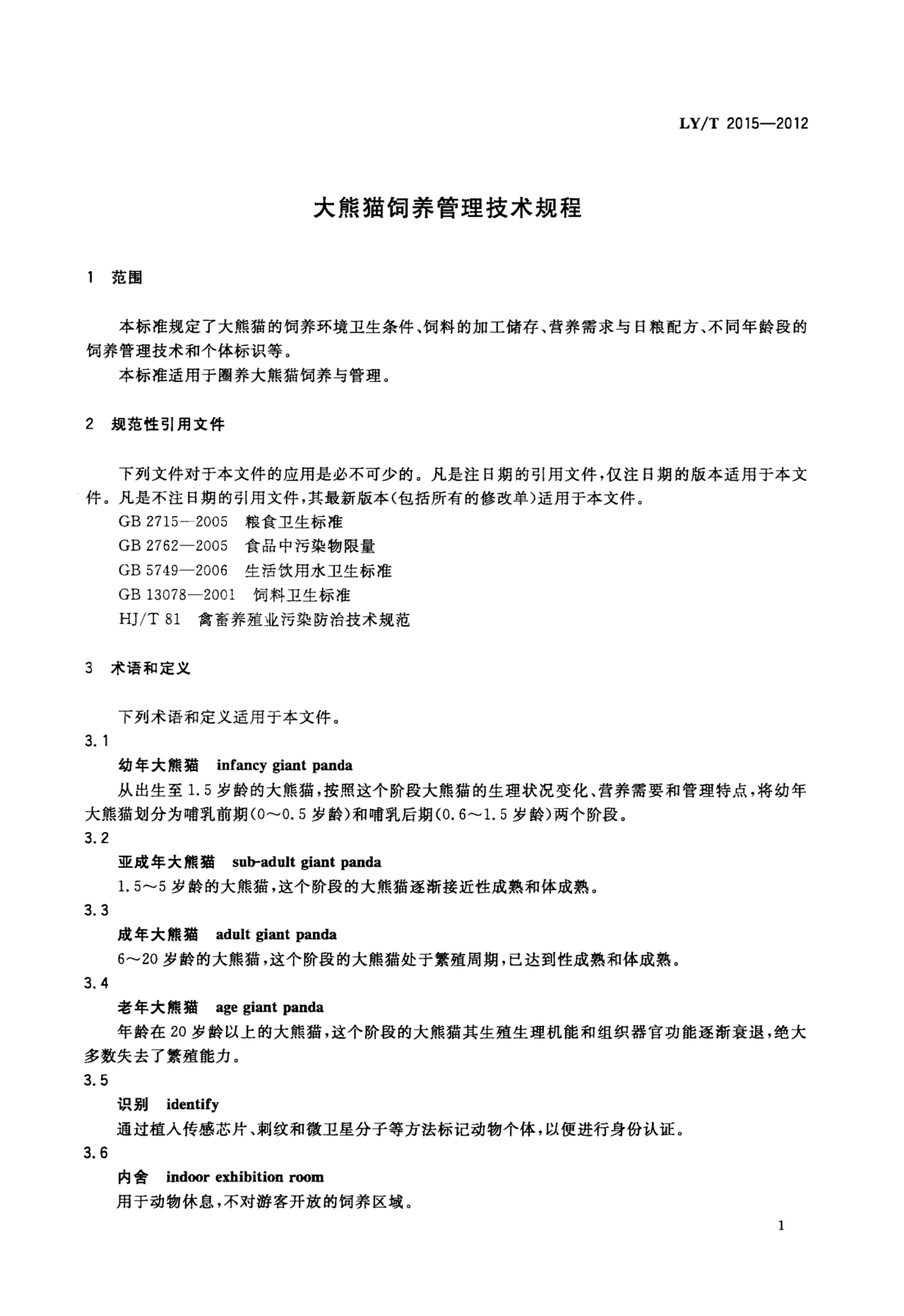 LY/T 2015-2012 大熊猫饲养管理技术规程