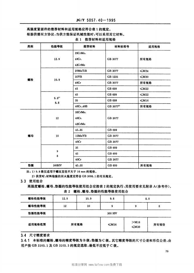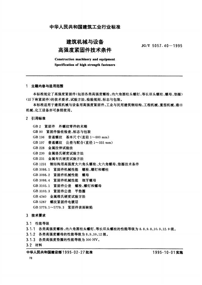 JG/T 5057.40-1995 建筑机械与设备 高强度紧固件技术条件