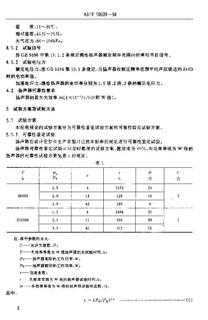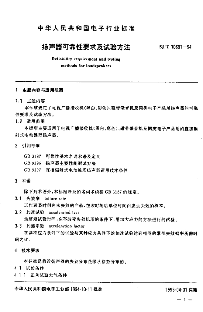 SJ/T 10601-1994 扬声器可靠性要求及试验方法