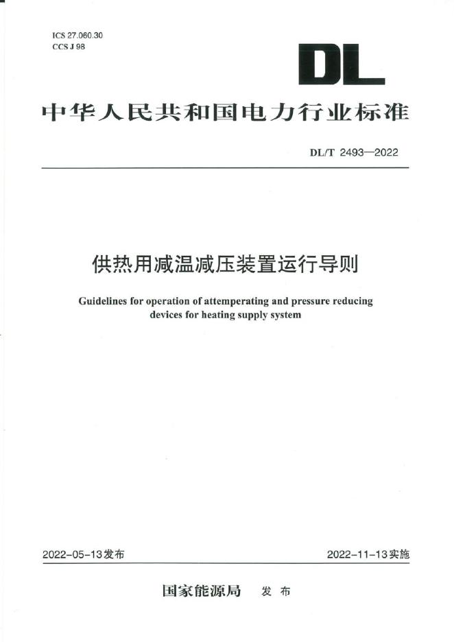 DL/T 2493-2022 供热用减温减压装置运行导则
