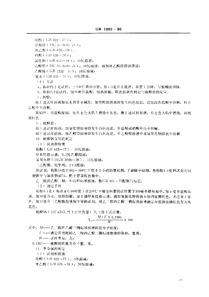 GB 1892-1980 食品添加剂 硫酸钙