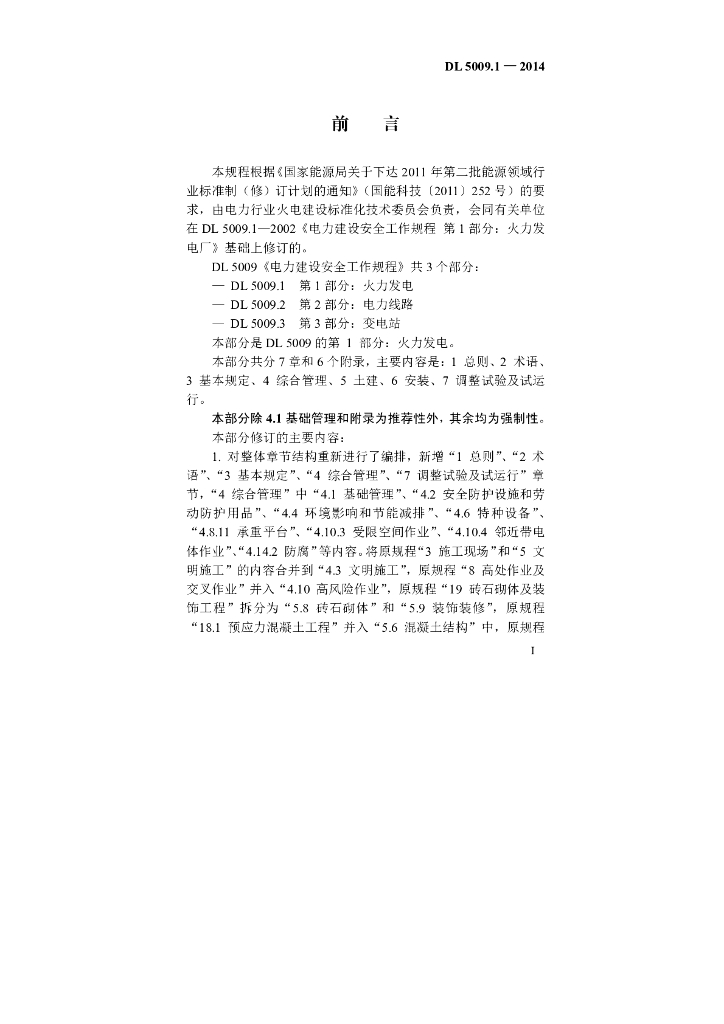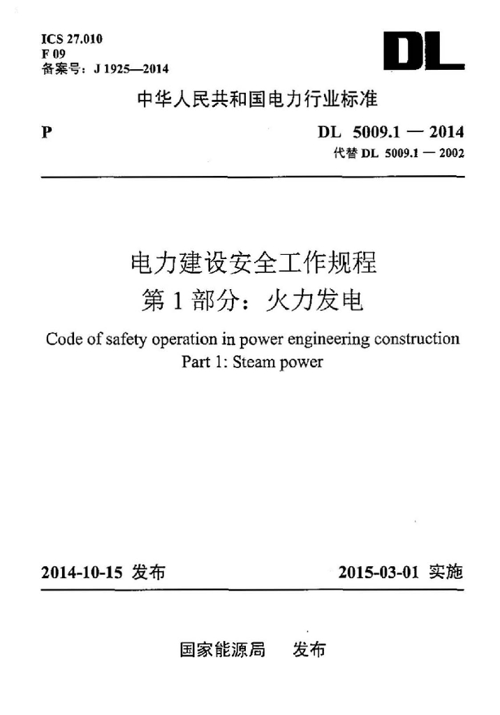 DL 5009.1-2014 电力建设安全工作规程 第1部分:火力发电