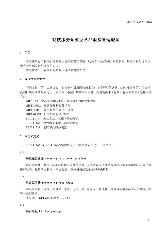 DB61/T 2087-2025 餐饮服务企业反食品浪费管理规范