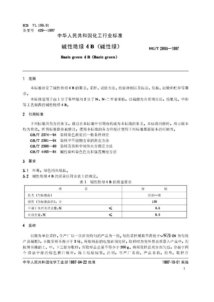 HG/T 2893-1997 碱性艳绿4B(碱性绿)