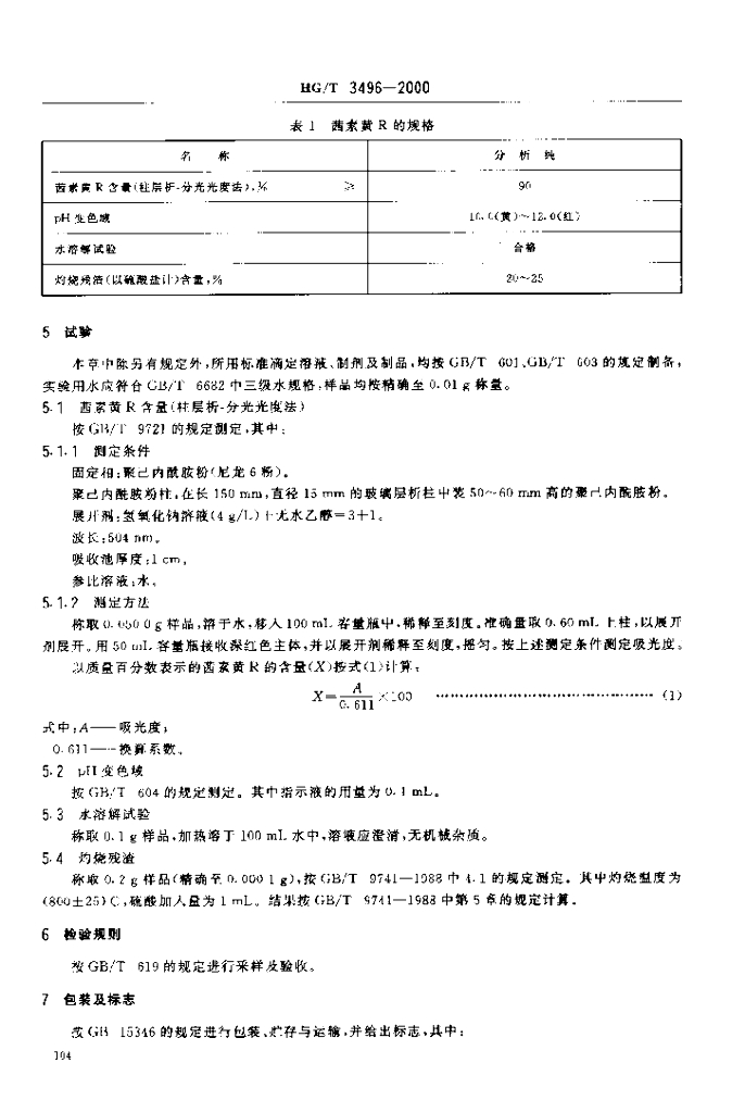 HG/T 3496-2000 化学试剂 茜素黄 R(对硝基苯偶氮水杨酸钠)