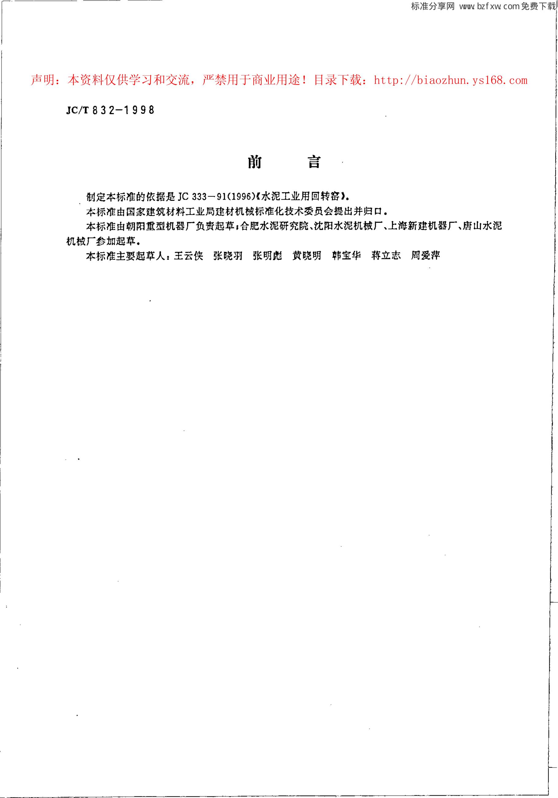 JC/T 832-1998 水泥工业用回转窑产品质量分等