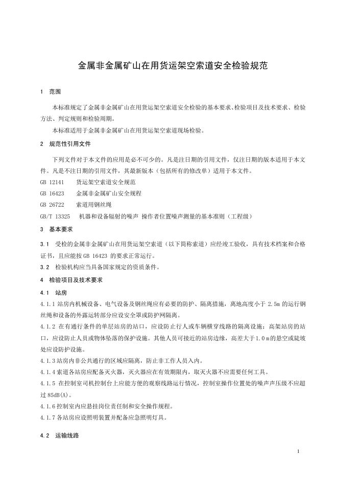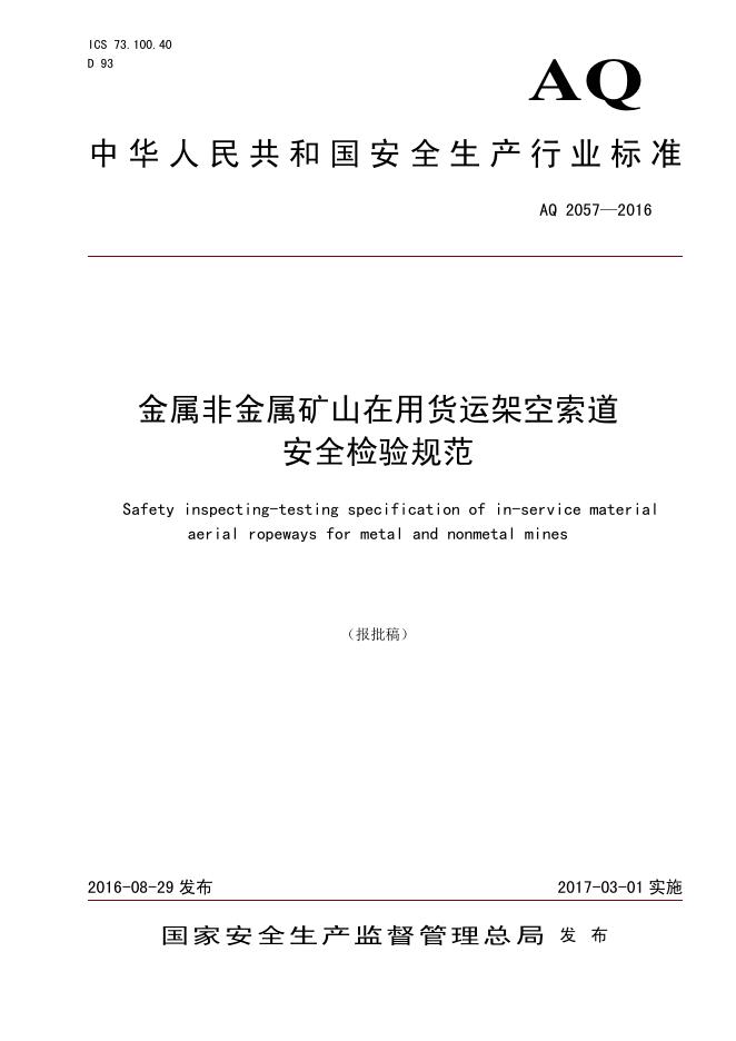 AQ 2057-2016 金属非金属矿山在用货运架空索道 安全检验规范
