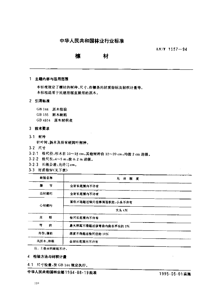 LY/T 1157-1994 檩材