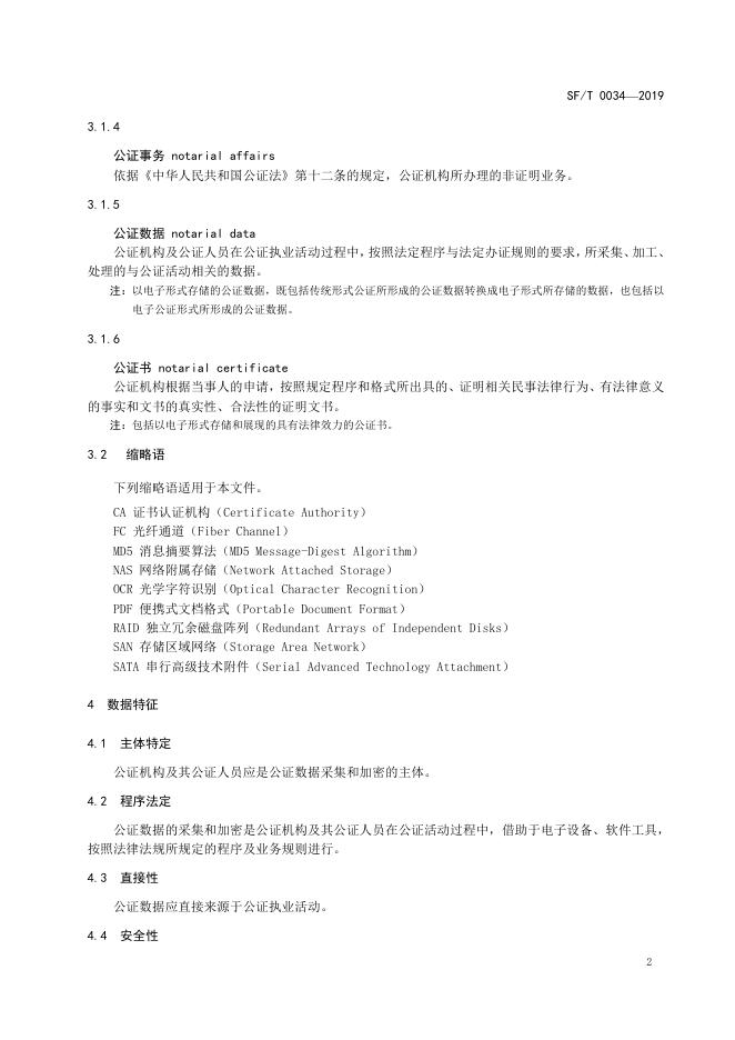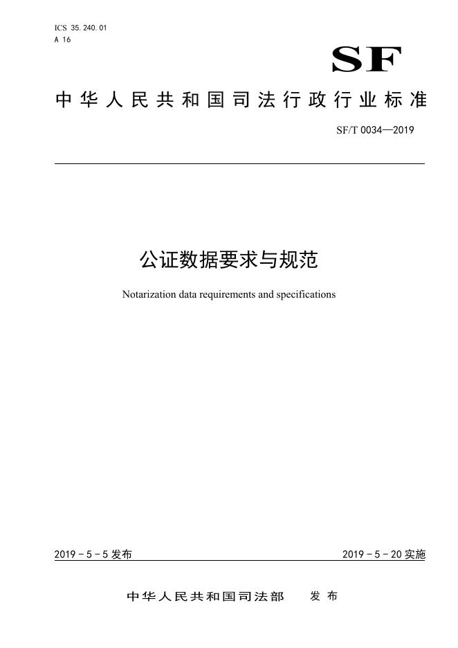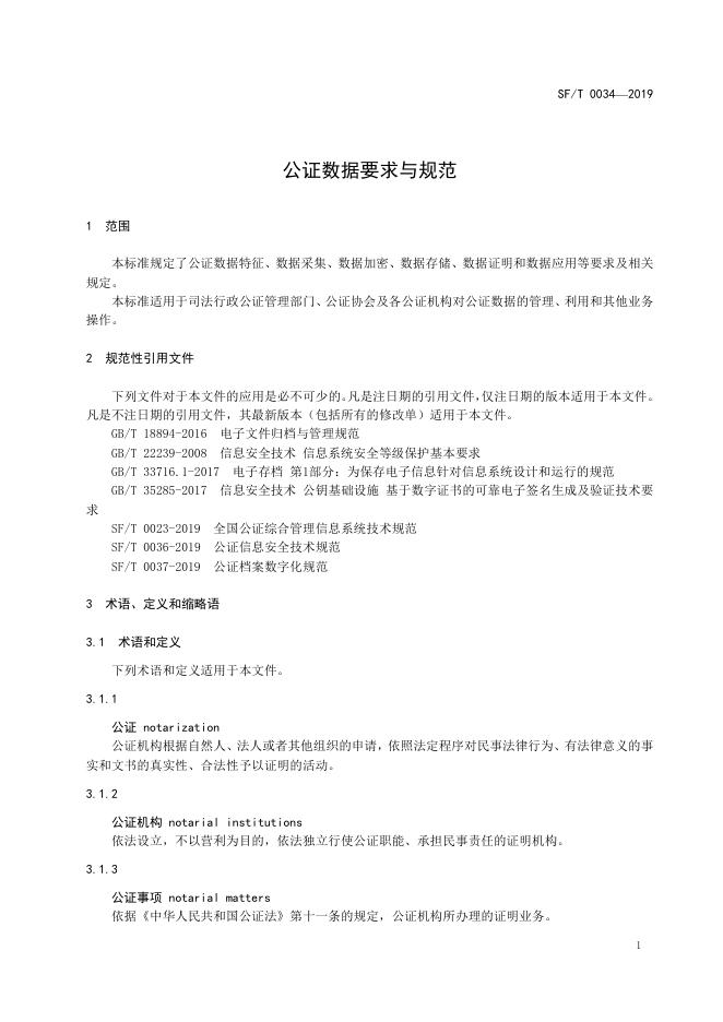 SF/T 0034-2019 公证数据要求与规范