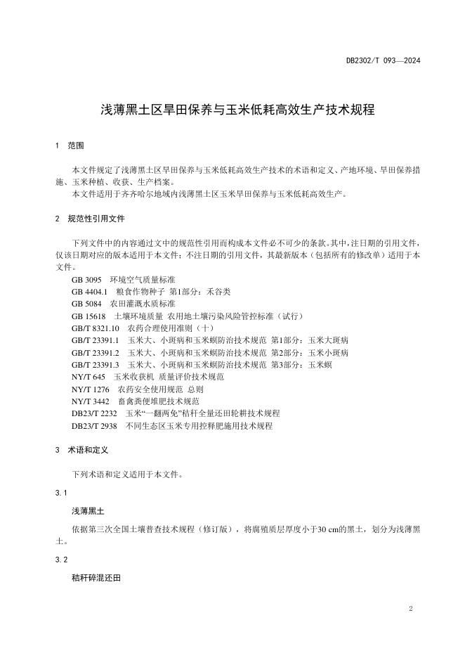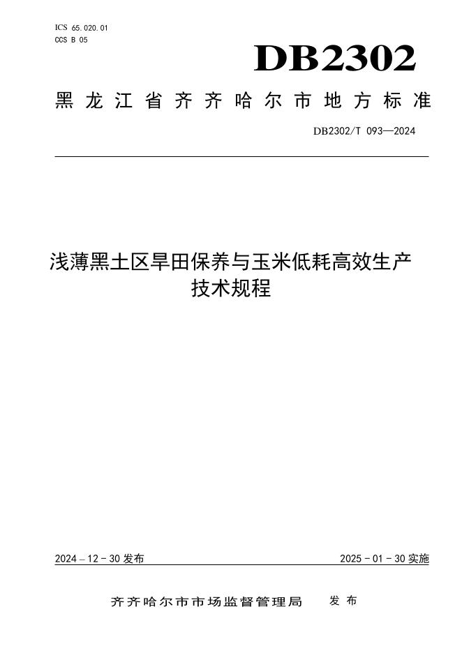 DB2302/T 093-2024 浅薄黑土区旱田保养与玉米低耗高效生产技术规程