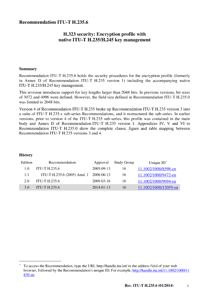 ITU-T H.235.6-2014 H.323 安全框架:声音编密码模式和本地H.235/H.245密码管理
