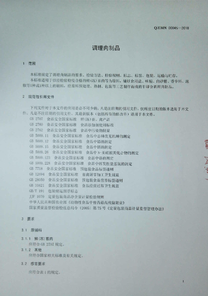 Q/EMN 0004S-2018 调理肉制品