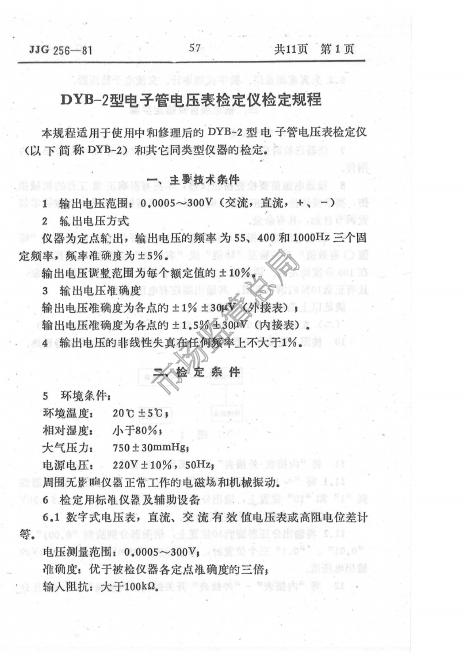 JJG 256-1981 DYB-2型电子管电压表检定仪检定规程