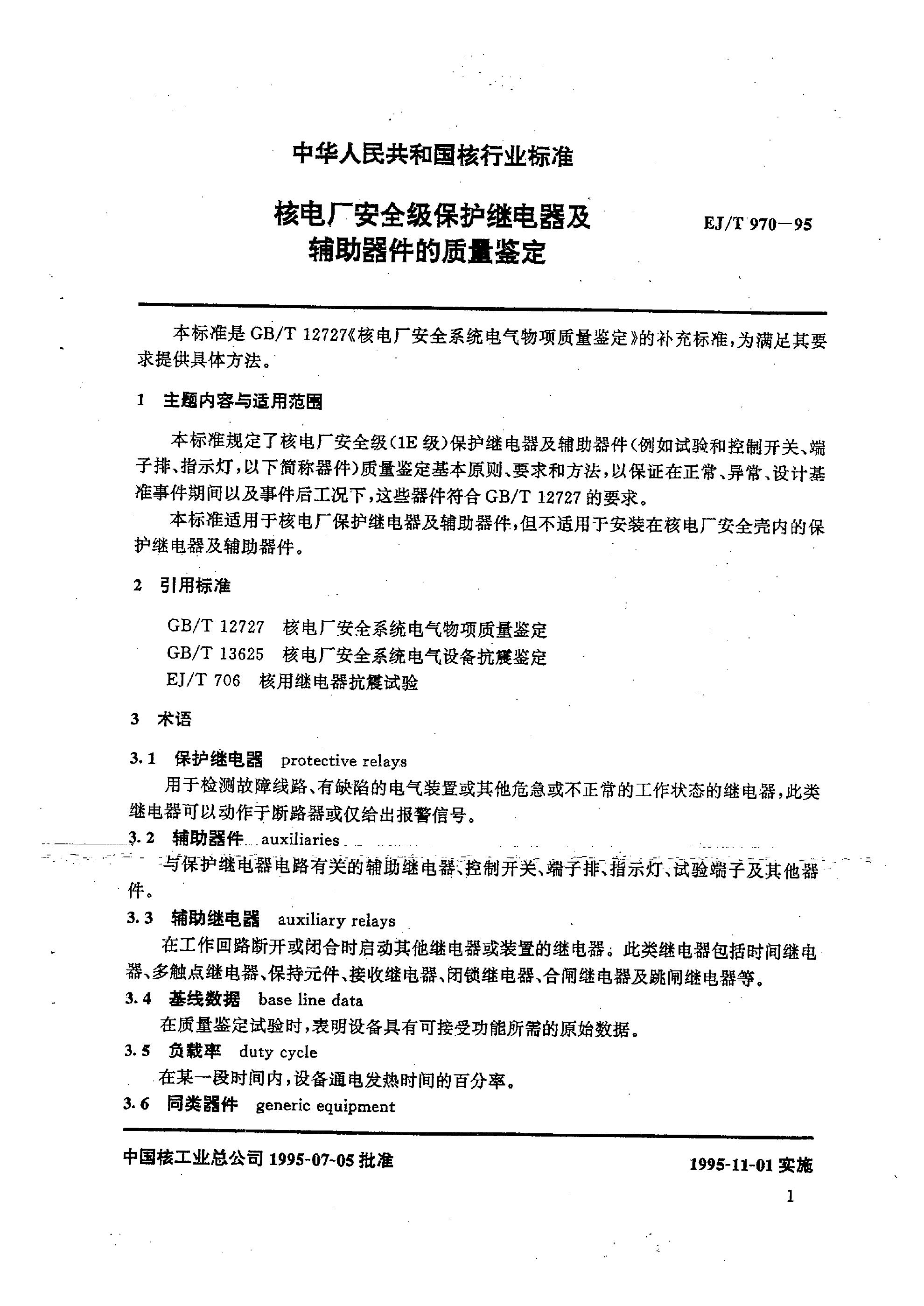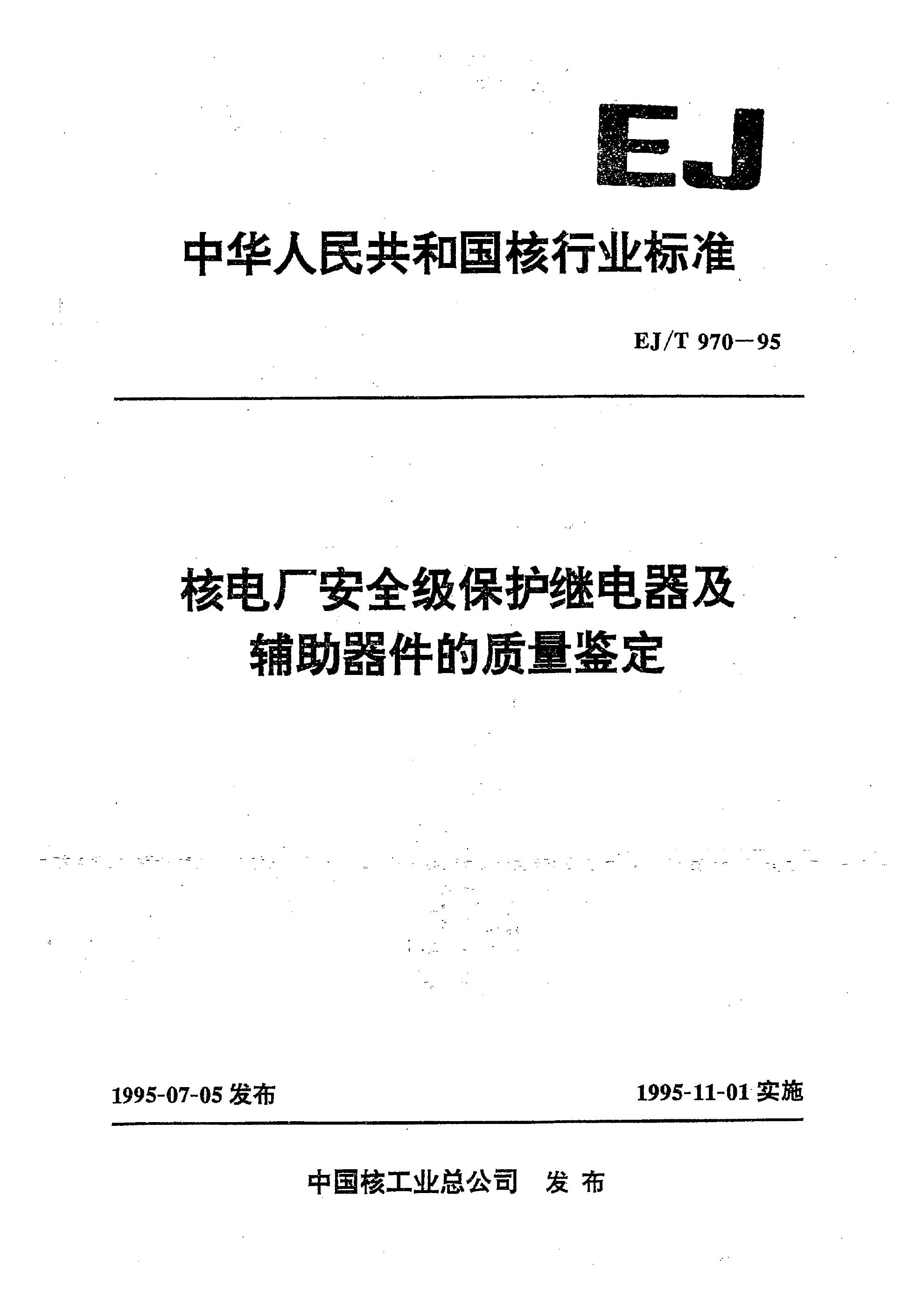 EJ/T 970-1995 核电厂安全级保护继电器及辅助器件的质量鉴定