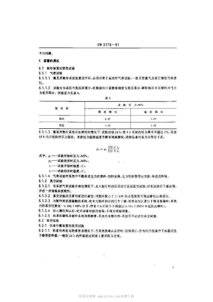 CB 3378-1991 船舶冷藏、空调制冷装置修理技术要求