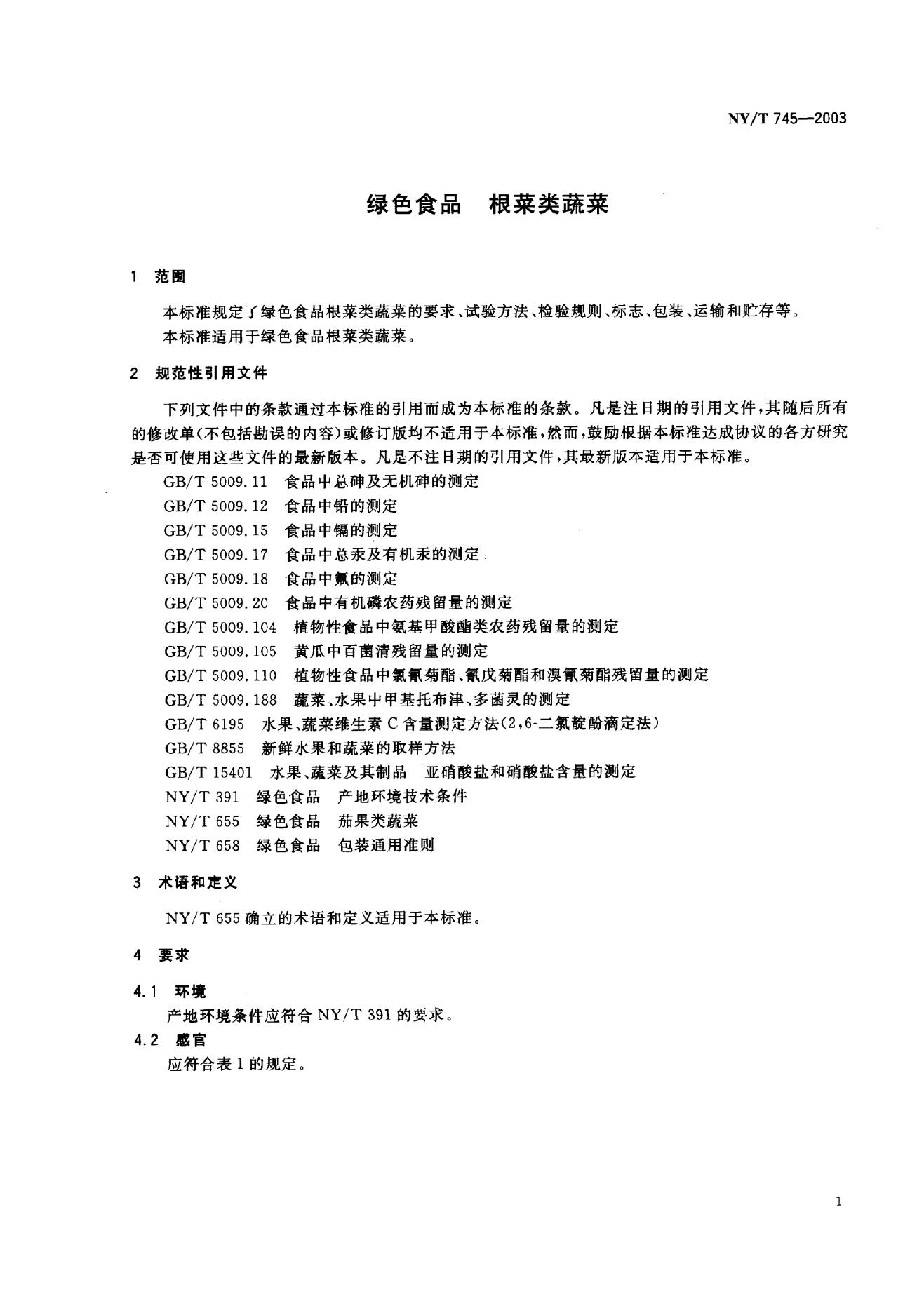 NY/T 745-2003 绿色食品 根菜类蔬菜