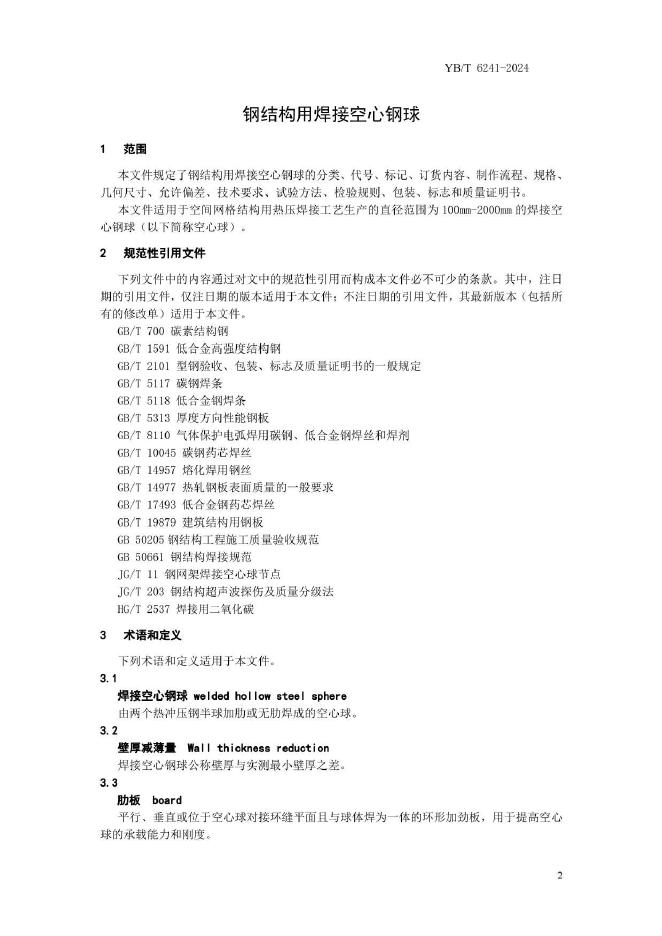 YB/T 6241-2024 钢结构用焊接空心钢球