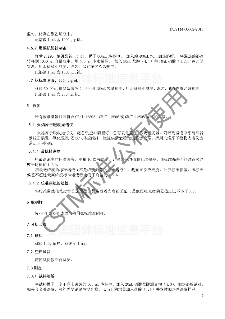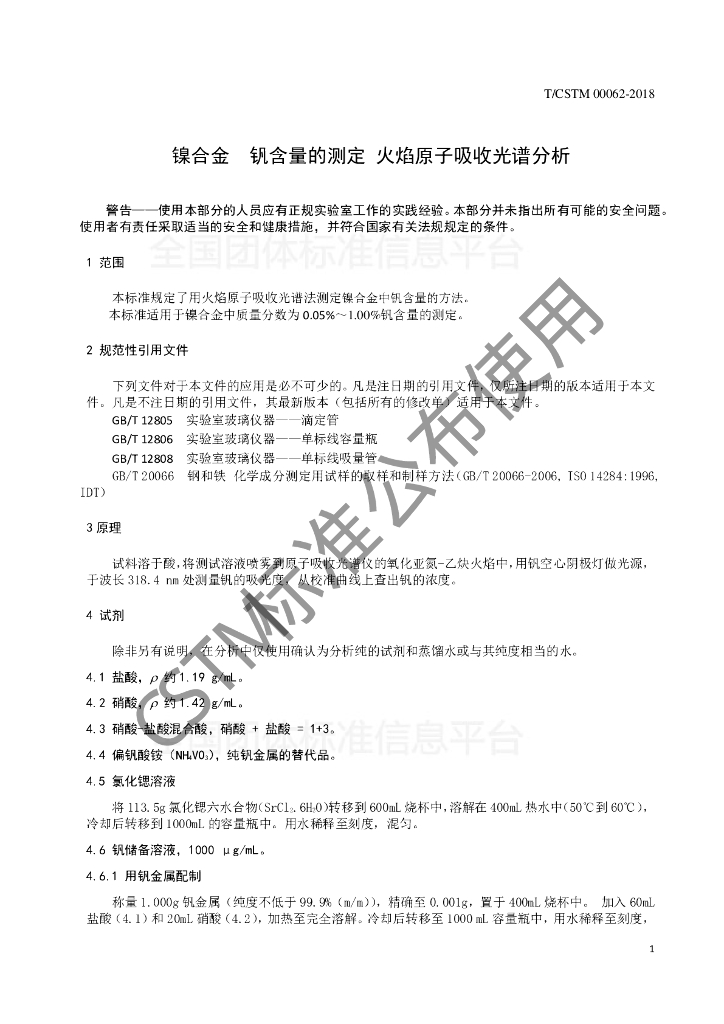 T/CSTM 00062-2018 镍合金 钒含量的测定 火焰原子吸收光谱法