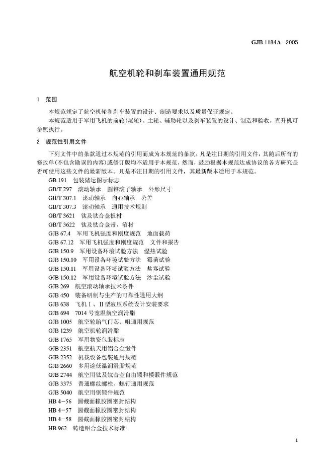 GJB 1184A-2005 航空机轮和刹车装置通用规范