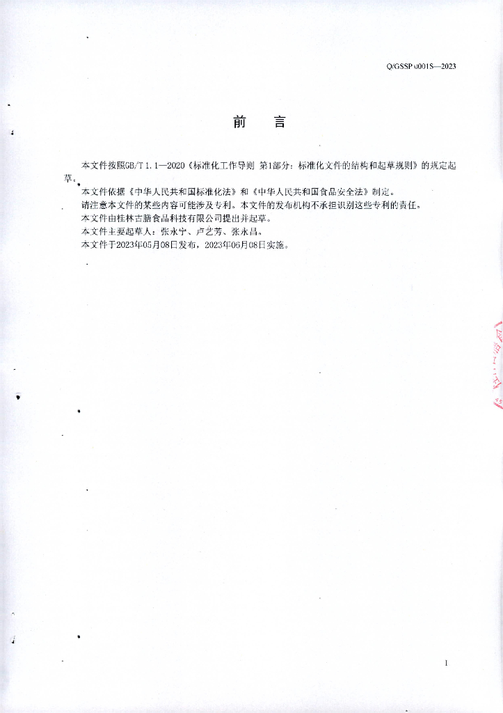Q/GSSP 0001S-2023 膳食纤维 桂林古膳食品科技有限公司