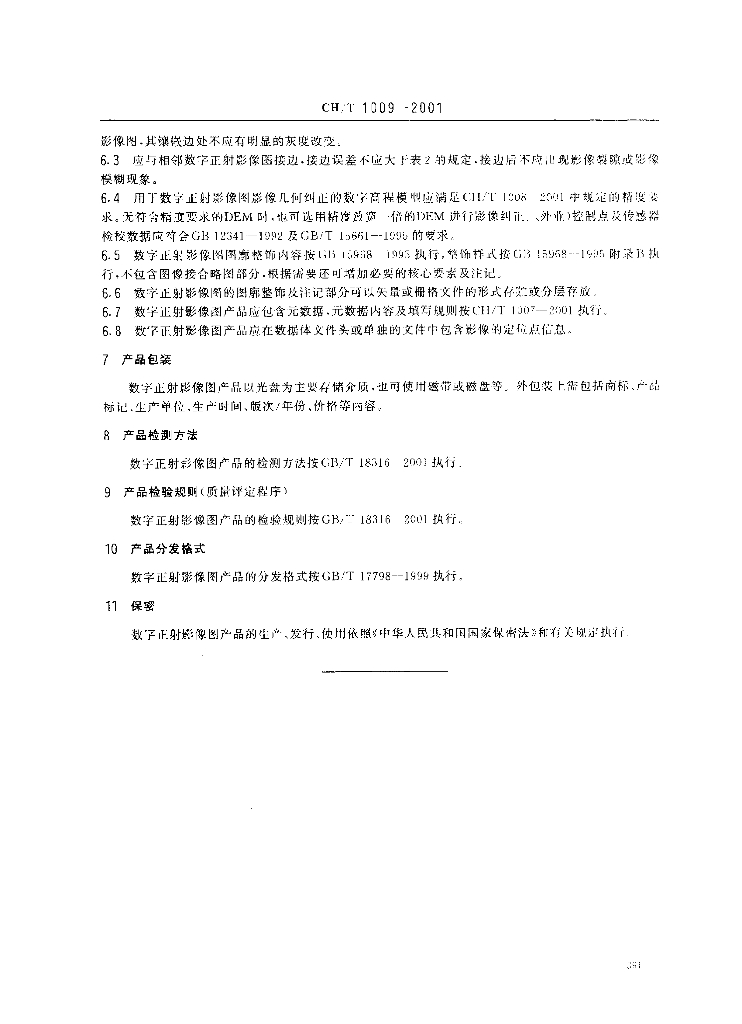 CH/T 1009-2001 基础地理信息数字产品 数字正射影像图