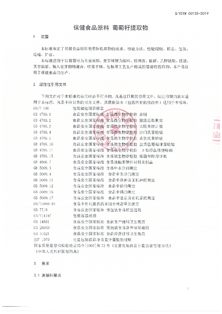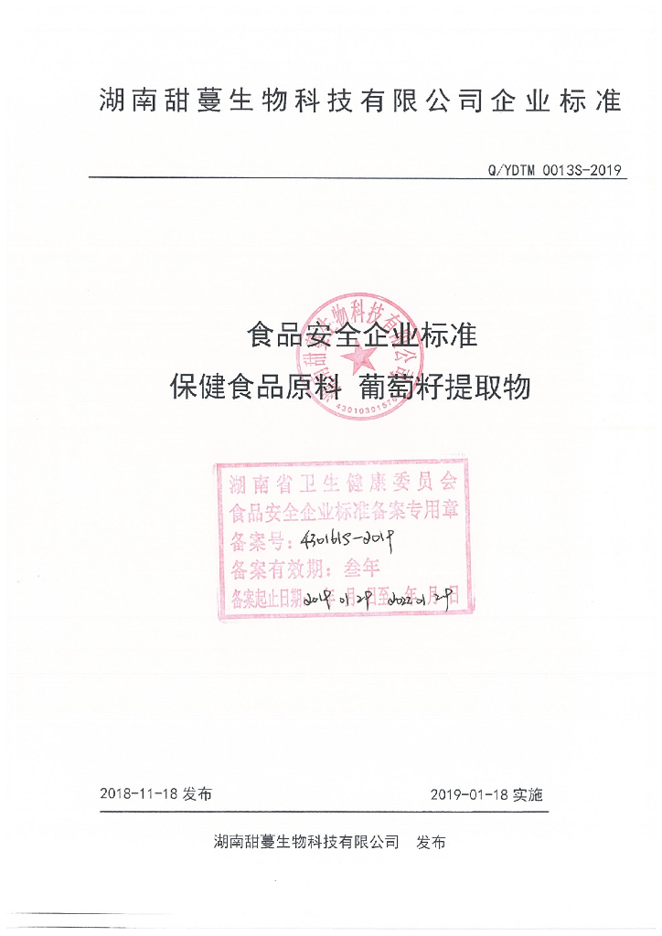 Q/YDTM 0013S-2019 保健食品原料 葡萄籽提取物