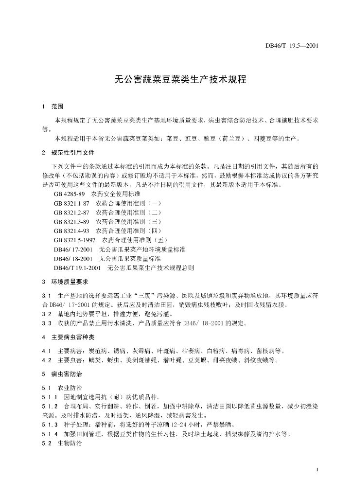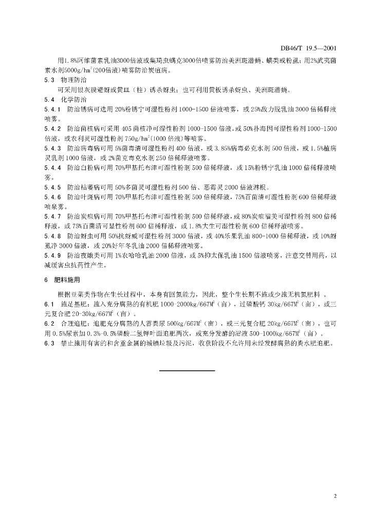 DB46/T 19.5-2001 无公害蔬菜豆菜类生产技术规程