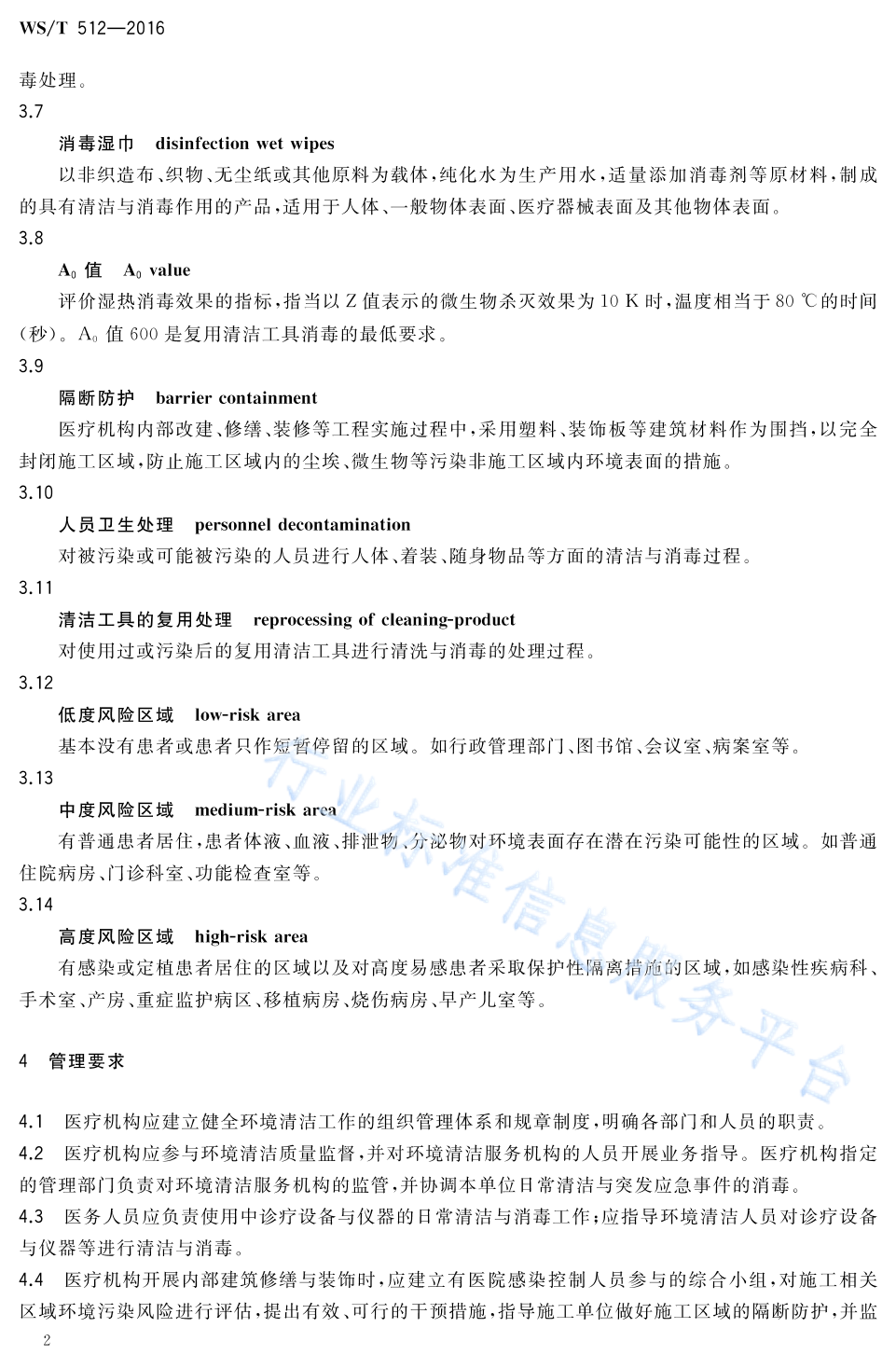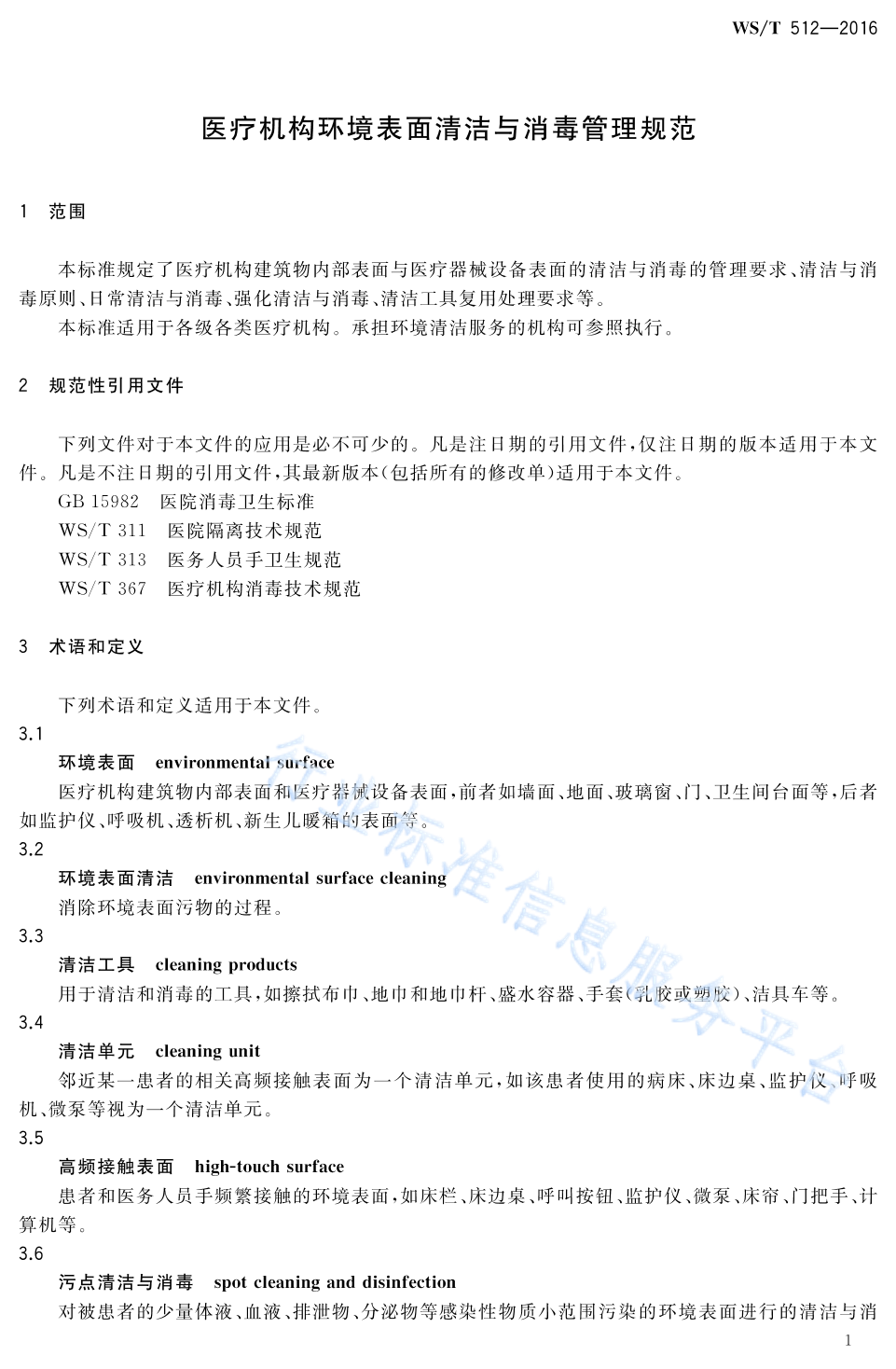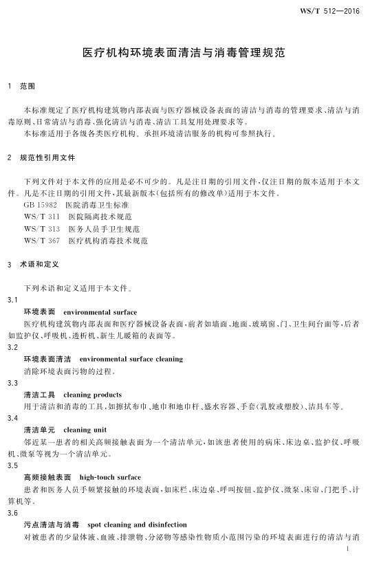 WS/T 512-2016 医疗机构环境表面清洁与消毒管理规范
