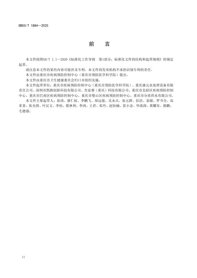 重庆市疾病预防控制中心(重庆市预防医学科学院)、重庆康元水处理设备有限责任公司、深圳市凯路创新科技有限公司、杰富睿(重庆)科技有限公司、重庆市北碚区疾病预防控制中心、重庆市巴南区疾病预防控制中心、重庆市璧山区疾病预防控制中心、重庆市分质供水有限公司。