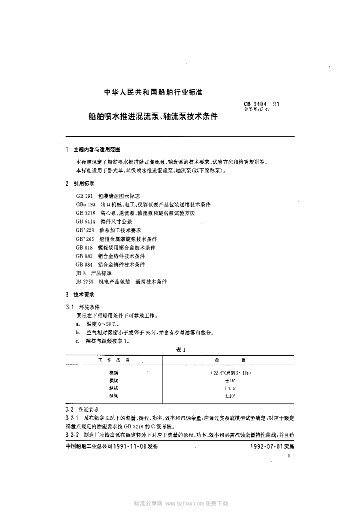 CB 3404-1991 船舶喷水推进混流泵、轴流泵技术条件