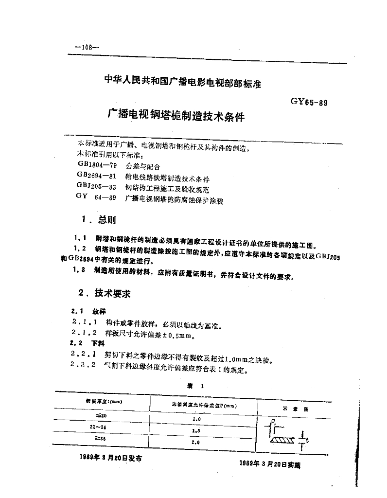 GY 65-1989 广播电视钢塔桅制造技术条件