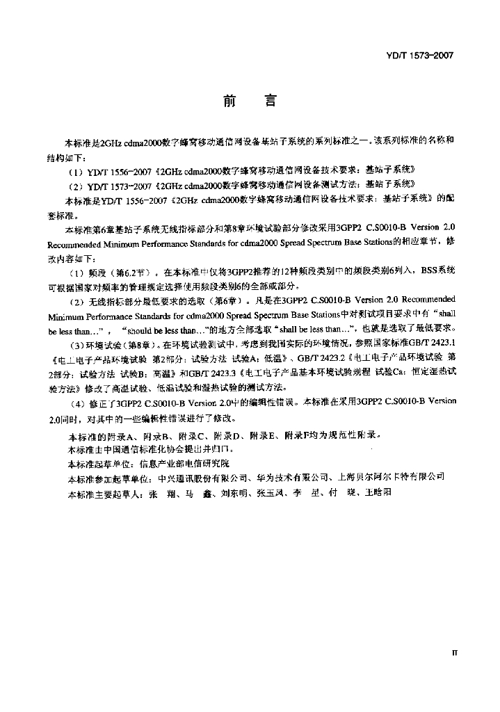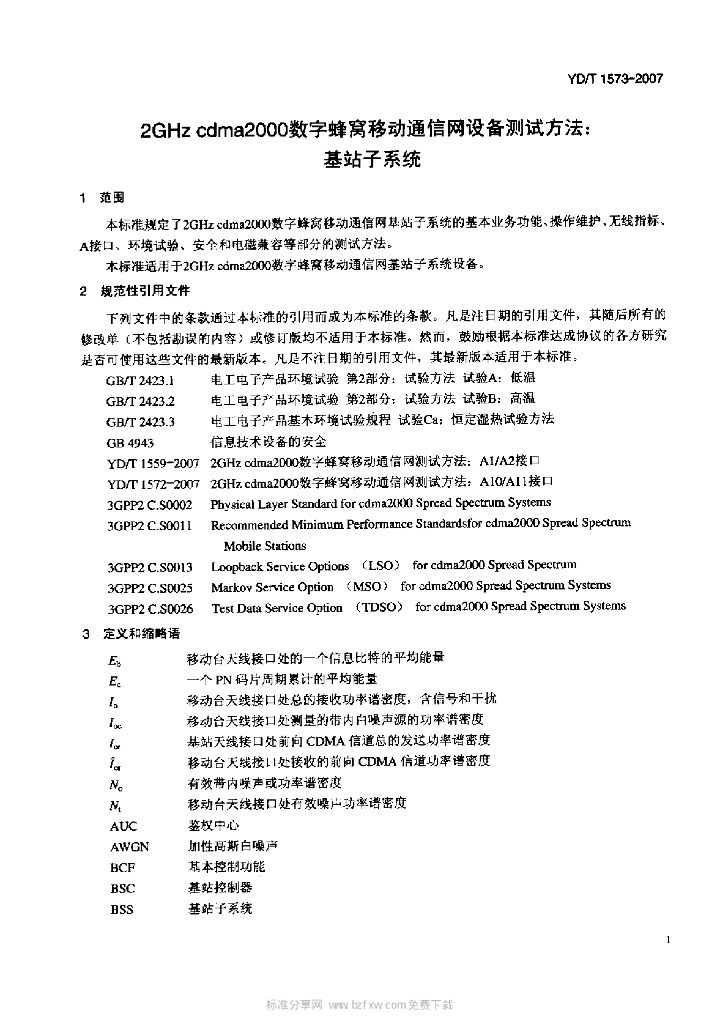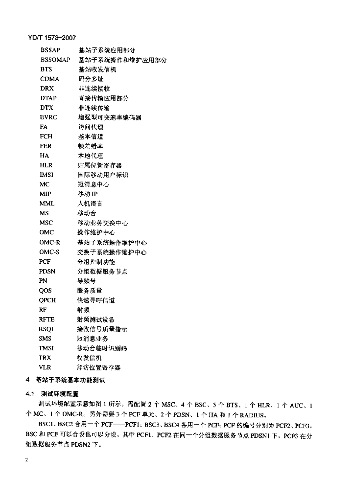 YD/T 1573-2007 2GHz cdma2000 数字蜂窝移动通信网设备测试方法:基站子系统