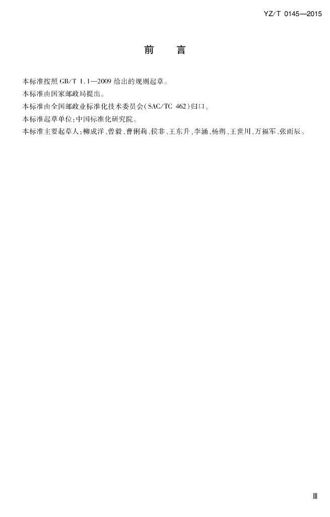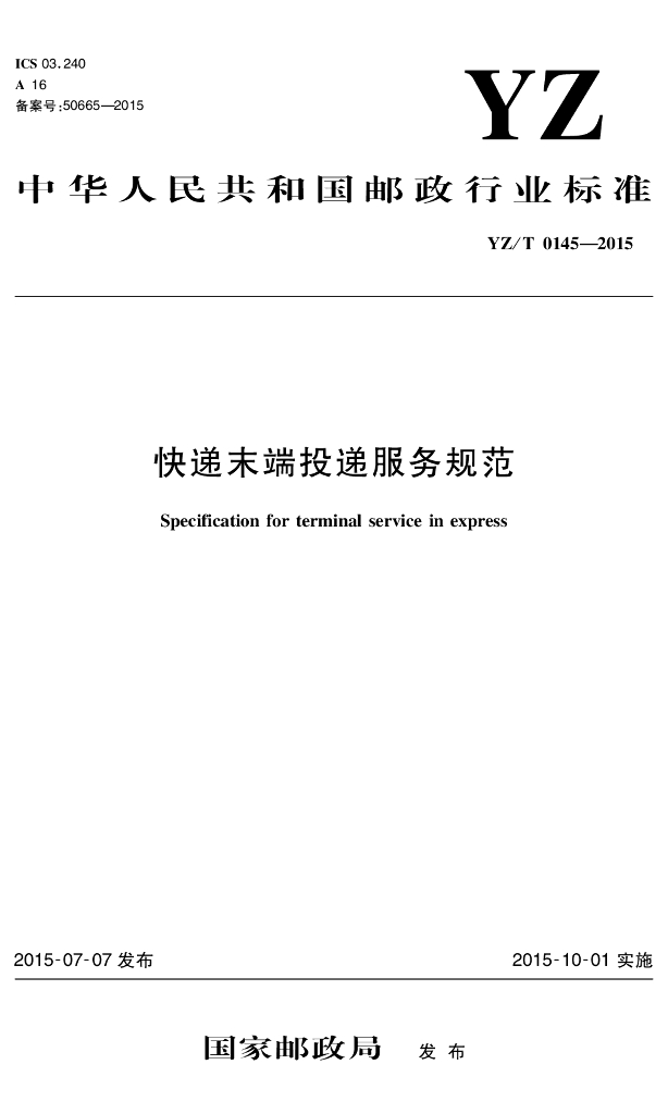 YZ/T 0145-2015 快递末端投递服务规范