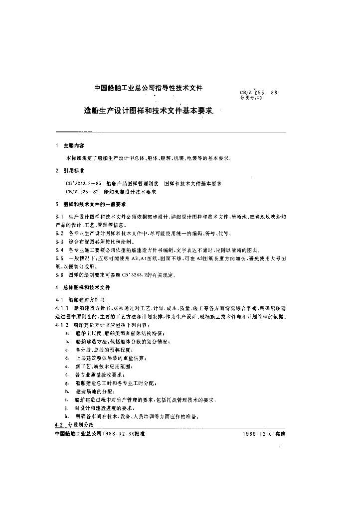 CB/Z 253-1988 造船生产设计图样和技术文件基本要求