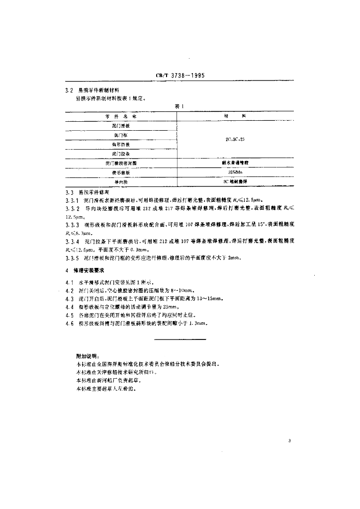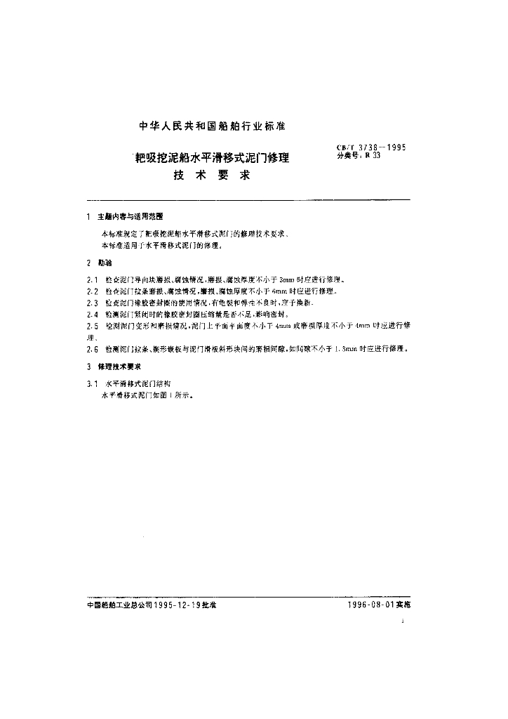 CB/T 3738-1995 耙吸挖泥船水平滑移式泥门修理技术要求