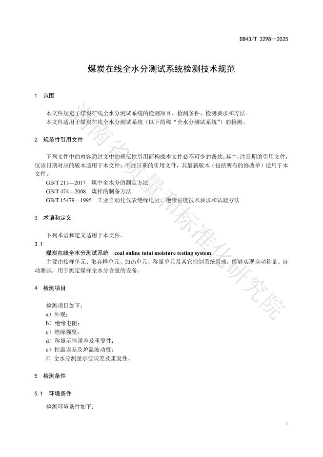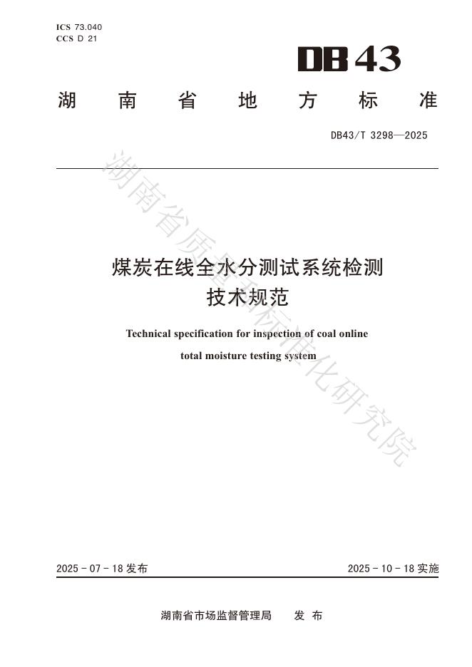 DB43/T 3298-2025 煤炭在线全水分测试系统检测技术规范